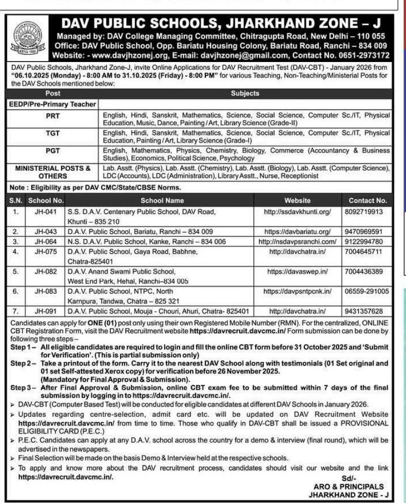 JHARKHAND ZONE -J RECRUITMENT ADVERTISEMENT FOR THE SESSION 2026-27